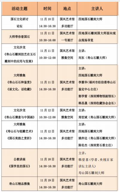 不僅如此,來自四地的國家級、省級工藝美術大師、非物質(zhì)文化遺產(chǎn)傳人將親臨深圳, 展覽期間,舉辦名家對話論壇,開設兩場名石雕刻藝術公開講座,另逢周末將特邀兩位國石大師在現(xiàn)場為觀眾導賞。