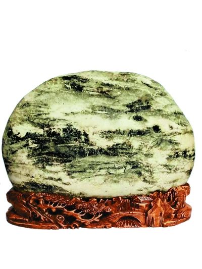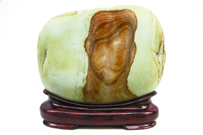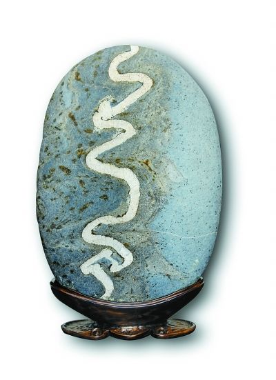 金沙江卵石的種類繁多,主要有芙蓉石、墨畫石、油畫石、龜紋石、螺鈿石、松花石、丹彩石、牧羊石、金剛石、燙畫石、彩蠟石、金沙彩等。這些石頭到底有多好,水富縣的石友們總結(jié)出十大美——天然美、色彩美、線條美、石質(zhì)美、形象美、裝飾美、朦朧美、含蓄美、空靈美、意境美。如果沒有江水長年累月的沖刷和搬運,也就不會形成這么多美麗的石頭。水富縣奇石辦多次組織當(dāng)?shù)氐氖虆⒓尤珖?,幾年來,捧回特等獎一枚,金?85枚,銀獎420枚,優(yōu)秀獎600枚。好像是在夸自己,曹會長說得有些臉紅,用手拍打起石頭來。在一旁的老伴兒說,老曹一高興就愛拍石頭,說石頭能聽懂他的話。這倒讓我想起著名美學(xué)家王朝聞贊美奇石的一首詩:“石居人外,人在石中。相擊相和,創(chuàng)造對方?!?/p>
