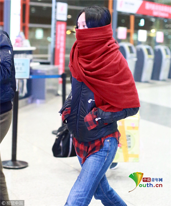 北京,周迅身著黑色棉衣、牛仔褲低調(diào)現(xiàn)身某機(jī)場(chǎng),紅色圍巾包裹嚴(yán)實(shí)難遮好氣色,大步流星氣場(chǎng)滿分。