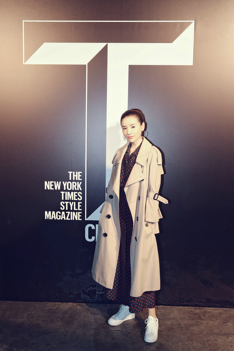 董潔亮相時(shí)尚派對 帥氣風(fēng)衣瀟灑利落