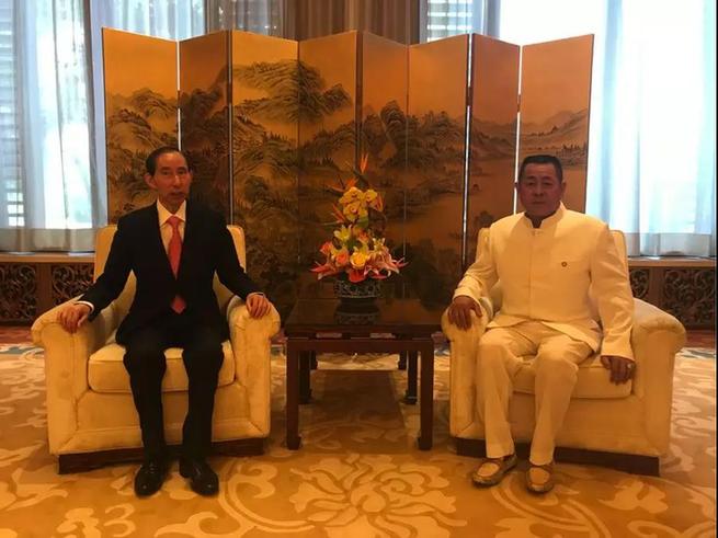 天基權董事長/總裁釋延豹與中國國際文化傳播中心執(zhí)行主席、中韓國際電影節(jié)中方委員長龍宇翔