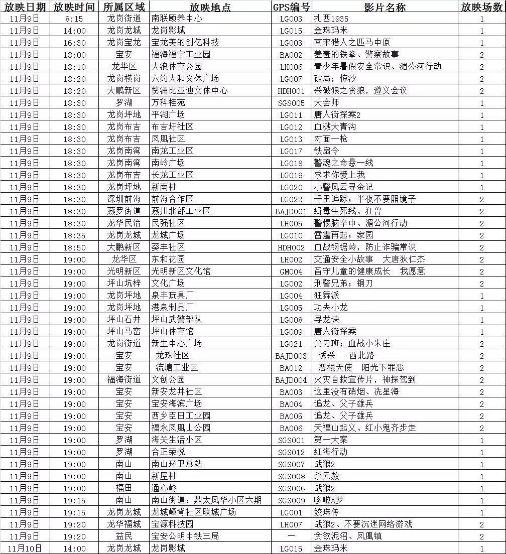 深圳市萬場免費(fèi)電影惠百姓之11月9日安排
