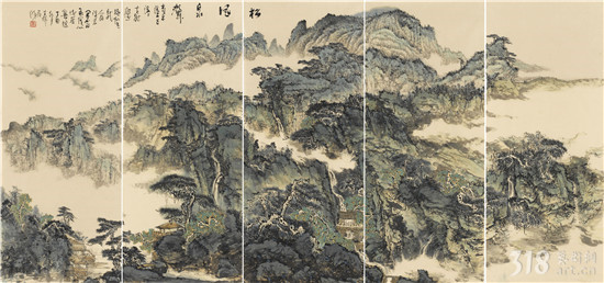 《松風(fēng)泉聲》 山水五聯(lián)屏 69×160cm×5 2018年