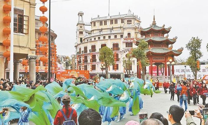 汕頭市元宵群眾歡樂匯文藝巡游將傳統(tǒng)文化和時尚元素巧妙結(jié)合。