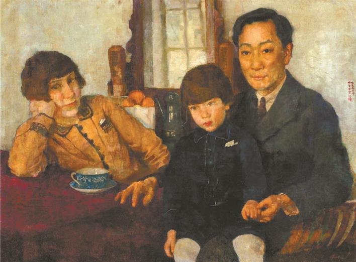 《楊仲子全家?!芬彩俏χ鳎猿领o之態(tài)吸引觀眾駐足,忍不住與畫中人對(duì)視。這是徐悲鴻的佳作,畫的是好友楊仲子一家。楊仲子是中國(guó)最早留學(xué)歐洲研習(xí)西方音樂(lè)的先驅(qū),回國(guó)后傳授西方音樂(lè),創(chuàng)建并推進(jìn)中國(guó)音樂(lè)教育教學(xué)體制,倡導(dǎo)改進(jìn)并推動(dòng)民族音樂(lè)發(fā)展。這件創(chuàng)作于1928年冬天的作品,徐悲鴻畫出了楊仲子和妻子、孩子閑適的狀態(tài)。畫中三人神態(tài)各異,在藝術(shù)家的傳情畫筆下,觀眾似能看到他們恬淡表情之后的情緒。