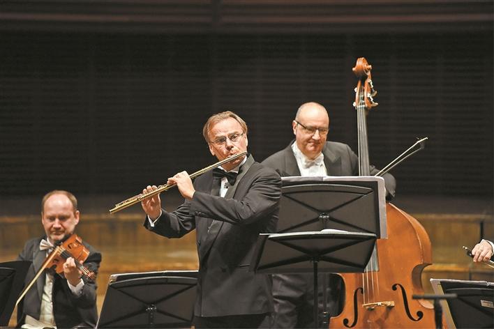 長笛大師安德烈· 格里米內(nèi)利與意大利愛樂獨奏家室內(nèi)樂團(tuán)音樂會。 深圳特區(qū)報記者 胡蕾 攝