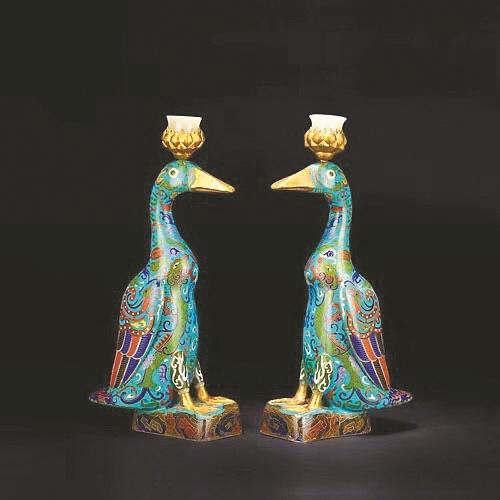 清代掐絲琺瑯雁形燭臺(tái)。