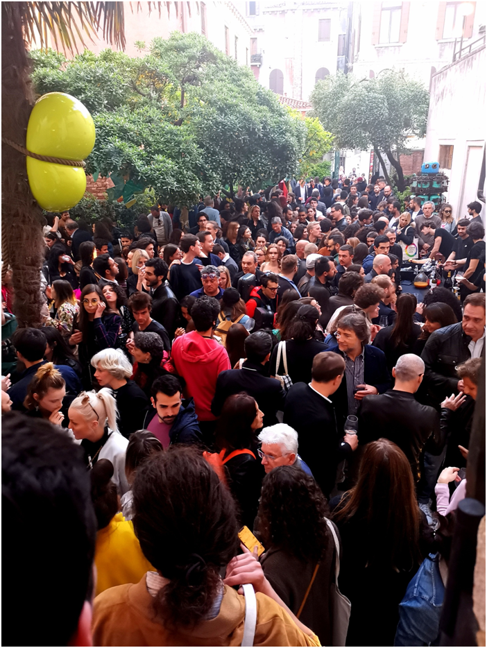 本屆威尼斯藝術(shù)雙年展覽藝術(shù)總監(jiān)為拉夫?魯戈夫(Ralph Rugoff),展覽名為“愿你生活在有趣的時(shí)代"(May You Live in Interesting Times)。全球藝術(shù)事務(wù)基金會(huì),是荷蘭非營(yíng)利組織,負(fù)責(zé)歐洲文化中心(European Cultural Centre)在莫拉宮和本博宮等五個(gè)主要展館主辦的大型國(guó)際展,邀請(qǐng)了世界各地優(yōu)秀藝術(shù)家參展,展覽現(xiàn)場(chǎng)人山人海,人流量大大超過以往,參觀者大多是來自世界各地藝術(shù)家與藝術(shù)愛好者、藏家、畫廊、策展人、及藝術(shù)機(jī)構(gòu)等。