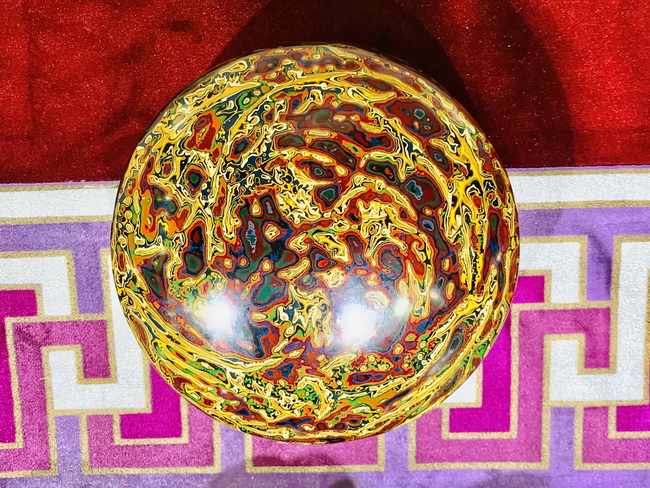 談到從事漆藝的經(jīng)過,羅獻兵老師說,主要得益于爺爺留下的2本書:一本是《文心雕龍》,一本就是既無書皮、也無目錄的匯集了中國歷代漆藝典故的油印小冊。據(jù)這本無皮書記載:“……又清嘉間浙江羅宣蓀善漆,有填漆彩髹之器皿又以五彩稠漆堆成花葉之色,又作種種之斑紋磨平之如畫……。60年代未,這本“無皮書”始終未離他爺爺?shù)淖笥?,老人家總是手捧那本無皮線裝書,時而思,時而記,其他百事不沾。這本無皮書現(xiàn)在成為羅氏傳承的唯一依據(jù)。羅家從太祖輩起,就世代從事漆藝,一扎根就是近200年,羅獻兵已是第六代。用他的話說,“正是爺爺贈予的冊子里描述的關(guān)于漆器迷幻般的漆彩世界的好奇,砥勵著我在漆藝這個充滿五彩斑瀾的夢幻世界里探尋、摸索,并甘于清貧,樂此不彼。”
