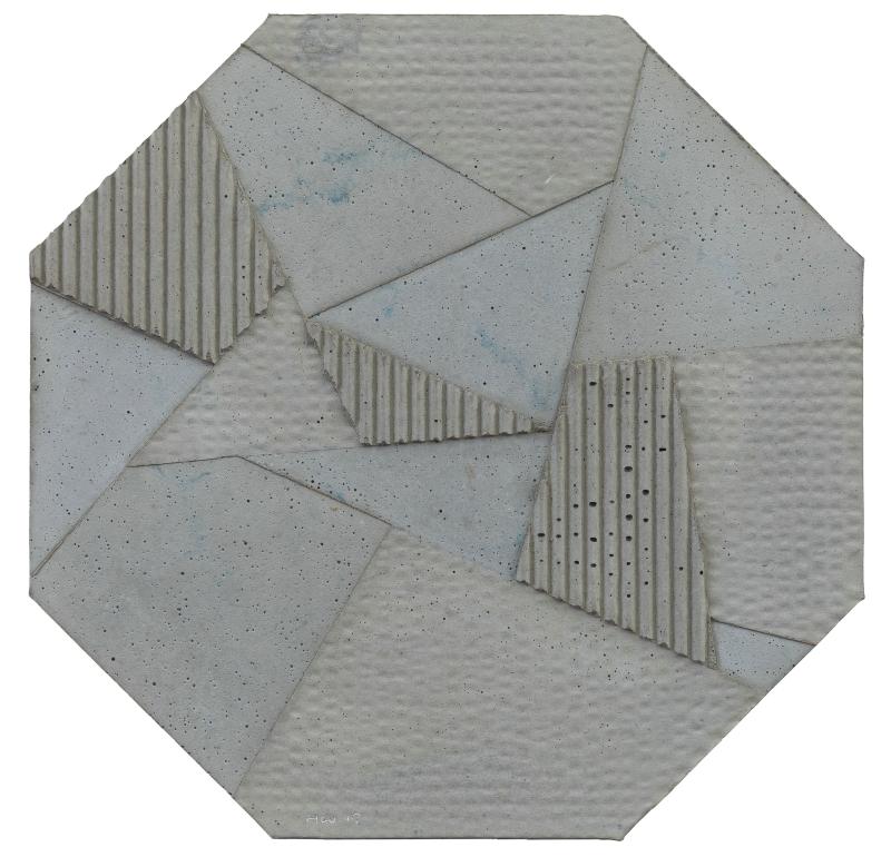 自2013年王豪開始以水泥作為個人創(chuàng)作媒介以來,三個系列“寂”、“樸”、“遠(yuǎn)”并行展開?!凹拧焙汀皹恪睆?qiáng)調(diào)水泥作品的靜態(tài)特征,不論是單件作品還是多件組合作品,在水泥材料的細(xì)微變化與色塊搭配上,力求傳達(dá)出一種寧靜、樸拙的整體氣息;“樸”系列在形式上更為豐富,不僅嘗試使用斜線、三角形乃至圓形,還探索富于中國古典韻味的形式表達(dá)(例如對中國古代手卷的模擬);“遠(yuǎn)”系列的名稱則來源于中國傳統(tǒng)山水繪畫所特有的透視技法“三遠(yuǎn)”概念,這系列作品意圖通過畫面的動態(tài)表現(xiàn)打破二維空間限定,拓展平面繪畫的深度與廣度,從美學(xué)意境上與高遠(yuǎn)、深遠(yuǎn)、平遠(yuǎn)相融合。