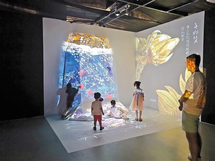 記者現(xiàn)場看到,觀眾的參觀路線以聶璜的考察路線為脈絡,跟隨聶璜信步海濱,走訪漁市,探究舶客、旅人、漁民口中筆下的謎之生物。昨日提前參觀展覽的家長與小朋友都表示展覽十分有趣,這種科技與古代文化結合的展覽,能讓小朋友在游玩中“漲知識”。