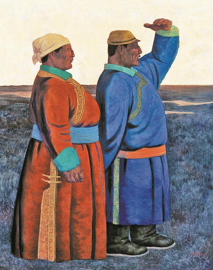 頡元芳的《遠方》表現(xiàn)了內(nèi)蒙古西北草原民族的人文情感和真實的生活狀態(tài);向園的《夏風》運用浪漫主義和象征主義的創(chuàng)作手法,讓我們回到一種自然、安寧、和諧的畫境之中;奚忠恕的《天路》,讓我們直面感受到面對“最美奮斗者”,用畫筆為他們點贊;吳登軍的《遺失的世界系列——三十六》呈現(xiàn)了他對環(huán)境問題的思考。