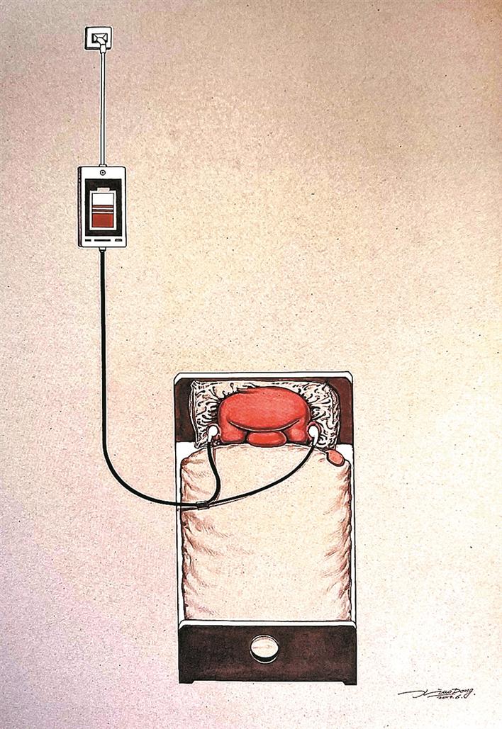 上榜漫畫家鄧微觀系深圳市寶安區(qū)打鐵文藝社社長(zhǎng),其《感物系列》以見(jiàn)物興感為主線,展開(kāi)豐富的想象力,用動(dòng)物擬人的方式幽默詼諧地抒發(fā)人生感悟,讓人會(huì)心一笑之余引起共鳴,令觀眾感嘆藝術(shù)家的漫無(wú)邊際的“腦洞”。對(duì)于作品首次入選國(guó)內(nèi)美術(shù)界規(guī)格最高的國(guó)展,鄧微觀很興奮:“這是對(duì)我這個(gè)系列作品的高度肯定?!薄陡形锵盗小废盗凶髌吩从谒e逛發(fā)呆時(shí)的想象碎片,將這個(gè)碎片貫穿就成了這個(gè)系列作品。鄧微觀在茶余飯后經(jīng)常到鐵崗的西鄉(xiāng)河邊散步,河中不時(shí)傳來(lái)低頻厚實(shí)的“男低音”引起他的注意,此起彼伏,聽(tīng)來(lái)如交響曲一般通達(dá)舒暢。他循聲尋覓,原來(lái)是蛤蟆的聲音,只見(jiàn)這些“音樂(lè)家”在下水道洞口,在草叢中,河道縫中快樂(lè)地歡唱……這些天生的樂(lè)觀者給鄧微觀帶來(lái)美妙的心情,所以創(chuàng)作了這幅《天生樂(lè)觀》。再如《三餐之余》,有時(shí)飯后經(jīng)常會(huì)在茶幾前發(fā)發(fā)呆,思考人生不應(yīng)該只是面包和蘋果,還應(yīng)有點(diǎn)別的……