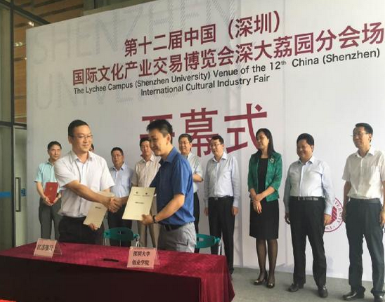 第十二屆中國(深圳)國際文化產(chǎn)業(yè)交易博覽會開幕當天,江蘇銀行深圳分行與深圳大學簽署《江蘇銀行深圳-深圳大學創(chuàng)業(yè)學院戰(zhàn)略合作協(xié)議》。