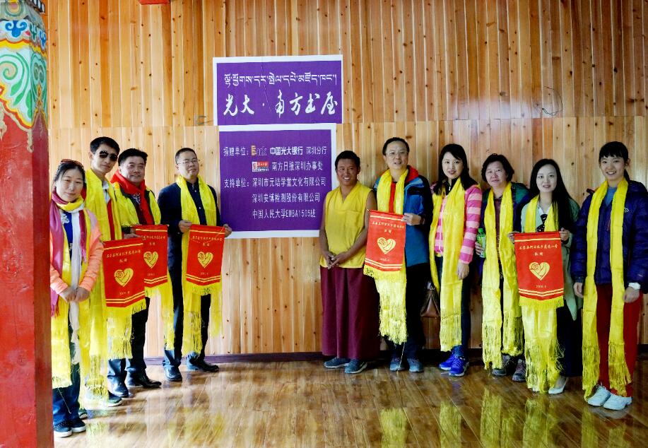 據(jù)了解,本次援建活動(dòng)是為了幫助四川甘孜阿壩州石渠縣阿日扎鄉(xiāng)的中心小學(xué)與慈悲小學(xué)500多位孩子們,實(shí)現(xiàn)他們的“圖書室”與“音樂教室”的夢(mèng)想?;顒?dòng)由光大銀行深圳分行、南方日?qǐng)?bào)深圳辦事處共同主辦,人民大學(xué)商學(xué)院EMBA1505、元培學(xué)堂和安博檢測(cè)股份有限公司協(xié)辦。在這個(gè)活動(dòng)中,來自深圳的光大證券、光大永明保險(xiǎn)、光大信托、光大金控、光大期貨、光大環(huán)保、光大能源等光大集團(tuán)駐深單位也積極參與捐款捐物,活動(dòng)啟動(dòng)僅兩周,就募集社會(huì)愛心人士等各類捐款40萬元,參與人數(shù)26000人。