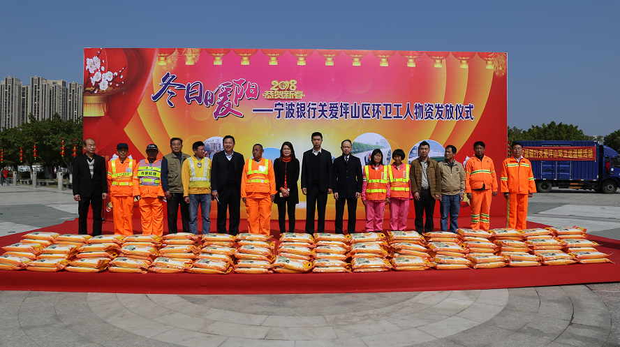 春節(jié)臨近,為了表達(dá)對(duì)環(huán)衛(wèi)工人的親切慰問(wèn),感謝他們一年來(lái)的辛勤付出,在坪山區(qū)城市管理局的推動(dòng),在寧波銀行深圳分行的支持下,舉行“冬日暖陽(yáng)”寧波銀行關(guān)愛(ài)環(huán)衛(wèi)工人物資發(fā)放活動(dòng),坪山區(qū)委常委、區(qū)人民政府副區(qū)長(zhǎng)、區(qū)政府黨組副書記代金濤同志及寧波銀行深圳分行副行長(zhǎng)李紅波對(duì)環(huán)衛(wèi)工人致以深切慰問(wèn),向全坪山區(qū)環(huán)衛(wèi)工人約2500人發(fā)放大米;在維園餐飲管理有限公司及金龜露營(yíng)小鎮(zhèn)的支持下,舉行了“情系環(huán)衛(wèi)工 益起行”活動(dòng),邀請(qǐng)了坪山區(qū)108位環(huán)衛(wèi)工人代表共進(jìn)愛(ài)心團(tuán)年飯,場(chǎng)面溫馨、熱鬧。