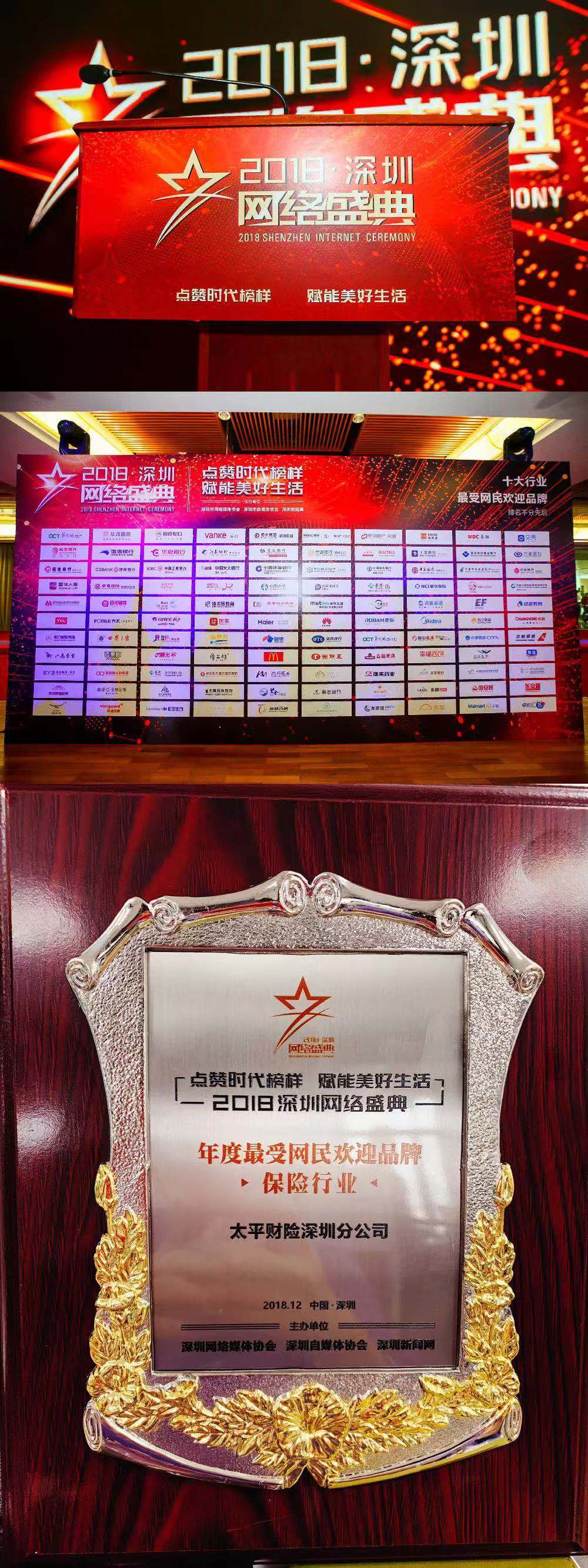 為弘揚(yáng)主流價(jià)值,唱響深圳好聲音,點(diǎn)贊深圳網(wǎng)絡(luò)正能量,賦能美好生活愿景,12月26日,“2018深圳網(wǎng)絡(luò)盛典”在市民中心成功舉辦,太平財(cái)險(xiǎn)深圳分公司受邀參加了盛典。