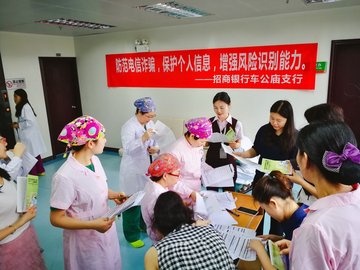 車公廟支行走進(jìn)深圳市婦幼保健院,以“防范電信網(wǎng)絡(luò)詐騙、保護(hù)個人信息,增強(qiáng)風(fēng)險識別能力”為主題,宣傳提升金融素養(yǎng)、共建金融消費(fèi)的健康環(huán)境。消保先鋒隊(duì)著重解防范電信網(wǎng)絡(luò)詐騙小技巧,做到“不輕信,不匯款、不透漏、不掃碼、不點(diǎn)擊鏈接、不接聽轉(zhuǎn)接電話?!蓖瑫r向醫(yī)護(hù)人員普及保護(hù)個人金融信息保護(hù)、支付安全宣傳等內(nèi)容,邀請客戶關(guān)注“招小寶”公眾號,閱讀轉(zhuǎn)發(fā)總分行推出的系列宣傳軟文。