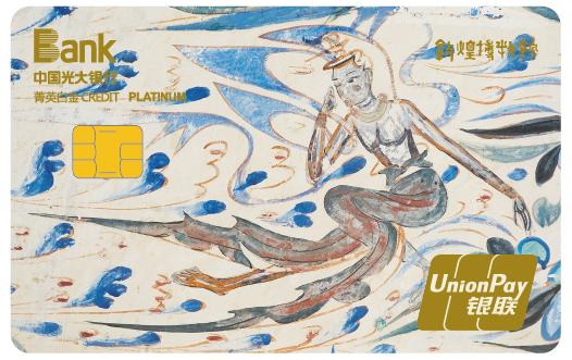 光大敦煌聯(lián)名信用卡卡面設計取材于敦煌壁畫,有敦煌大智文殊白金卡、敦煌天宮伎樂白金卡以及敦煌五百強盜成佛菁英白金卡三種信用卡。光大敦煌聯(lián)名信用卡的卡面設計靈感均來源于敦煌壁畫,大智文殊白金卡畫面為文殊菩薩結跏坐于青面獅虬首仙獅背上。文殊菩薩是專司智德、辯才第一的大菩薩,尊號“大智文殊”。天宮伎樂白金卡主體畫面為伎樂天,取材于莫高窟288窟,營造了佛陀講經(jīng)說法時佛國世界歡樂祥和的氛圍。五百強盜成佛菁英白金卡卡面設計取自“五百強盜成佛”的壁畫故事,佛用神通使被剜去雙眼的強盜重見光明,并對他們進行點化,五百強盜潛心苦修終成五百羅漢。光大敦煌聯(lián)名信用卡的卡面設計將傳統(tǒng)文化融入現(xiàn)代金融產(chǎn)品,極具敦煌文化的風格。