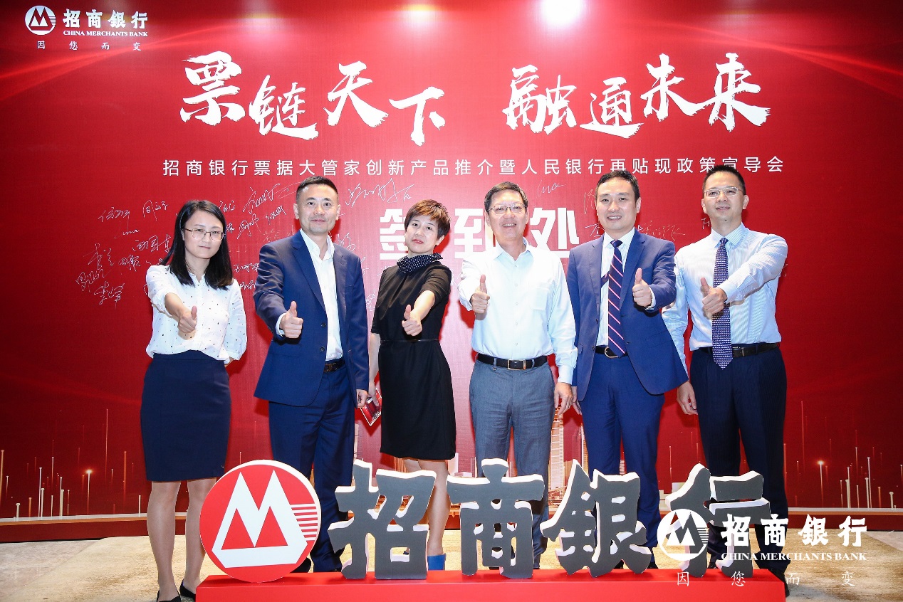 2019年11月15日,招商銀行攜手中國人民銀行深圳市中心支行在深圳成功舉辦“2019招商銀行票據(jù)大管家創(chuàng)新產(chǎn)品推介會暨人民銀行再貼現(xiàn)政策宣導會”。本次推介會以“票鏈天下?融通未來”為主題,來自華為、TCL、富士康、中興通訊、創(chuàng)維、深圳水務等100余家企業(yè)代表出席,共同探討票交所時代下票據(jù)管理、融資以及創(chuàng)新產(chǎn)品實踐。中國人民銀行深圳市中心支行貨幣信貸管理處出席推介會,隆重介紹即將推出的人民銀行普惠金融貼現(xiàn)政策——“商票通”。招商銀行總行票據(jù)業(yè)務部黃斌總經(jīng)理、招商銀行總行研究院譚海鳴副院長、招商銀行深圳分行曾令武行長助理及招商銀行深圳分行票據(jù)業(yè)務部張衍松總經(jīng)理共同參與了此次活動。