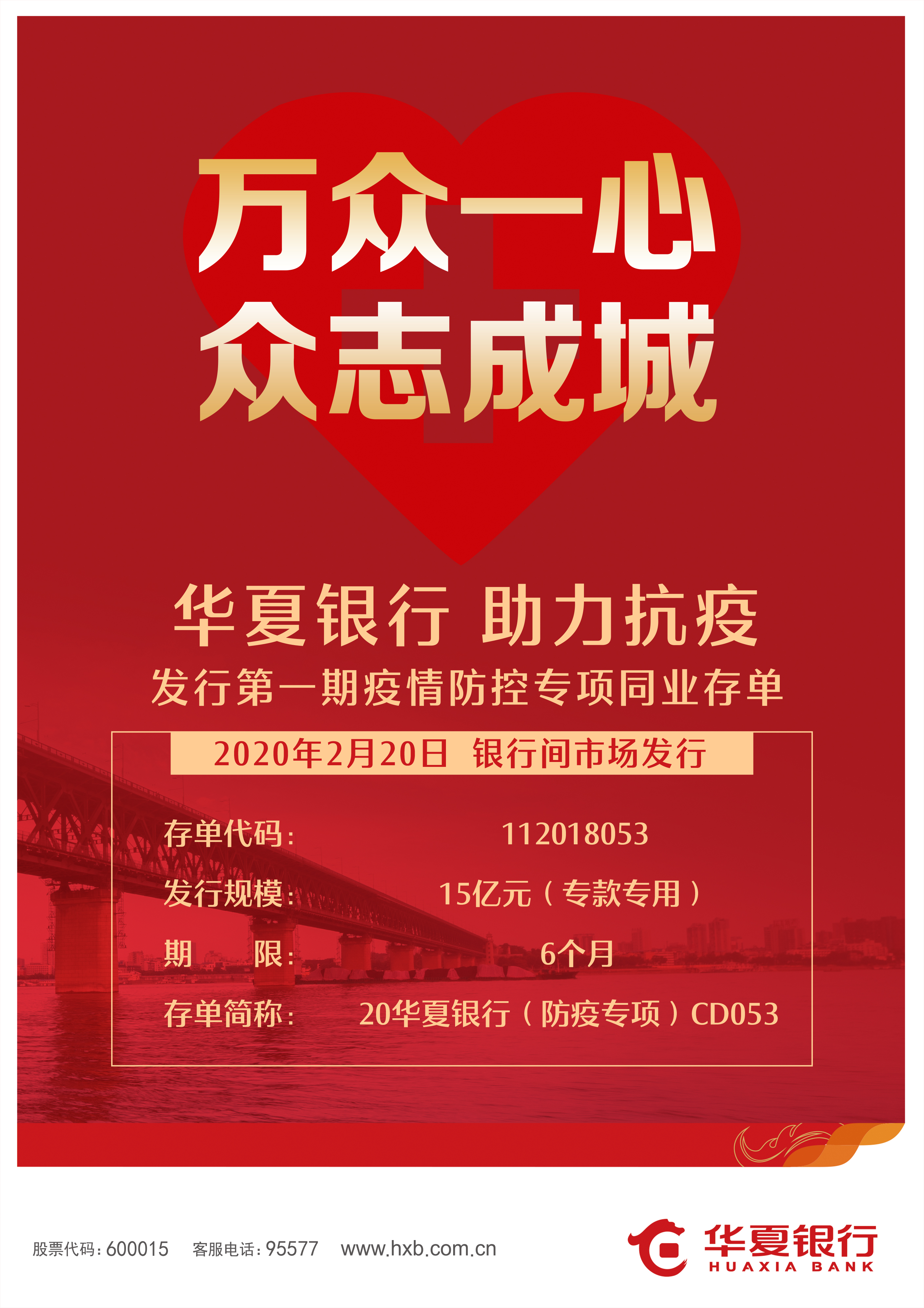 深圳新聞網(wǎng)2月20日訊 華夏銀行迅速響應(yīng)人民銀行疫情防控相關(guān)工作要求,于2月20日在全國銀行間市場成功發(fā)行疫情防控專項同業(yè)存單,為疫情防控提供資金支持。本期防疫專項存單發(fā)行規(guī)模15億元,發(fā)行期限6個月,發(fā)行利率2.40%,發(fā)行獲得了各類投資機(jī)構(gòu)的廣泛關(guān)注,投資者涵蓋城商行、農(nóng)商行、證券公司和基金公司等不同類型的20多家金融機(jī)構(gòu)。