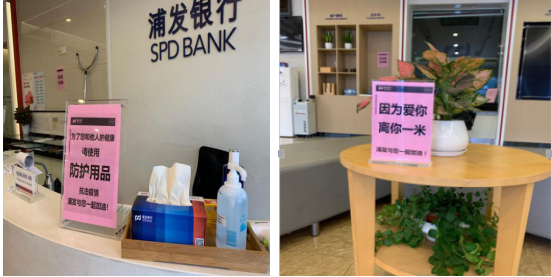 2月10日,在接到浦發(fā)深圳分行統(tǒng)一部署的復(fù)工安排后,科苑支行落實(shí)網(wǎng)點(diǎn)廳堂的各項(xiàng)防疫措施和人員復(fù)工的安全措施,在確保員工和客戶(hù)健康安全的前提下,全力保障各項(xiàng)金融服務(wù)需求。走進(jìn)浦發(fā),可以看到廳堂多處區(qū)域配備了口罩、消毒液、一次性手套等防控物資,在廳堂顯眼處設(shè)計(jì)擺放了“因?yàn)閻?ài)你,離你一米”等暖心提示。其中,黨員同志們帶頭在廳堂進(jìn)行宣傳指引,協(xié)助做好防護(hù)措施。