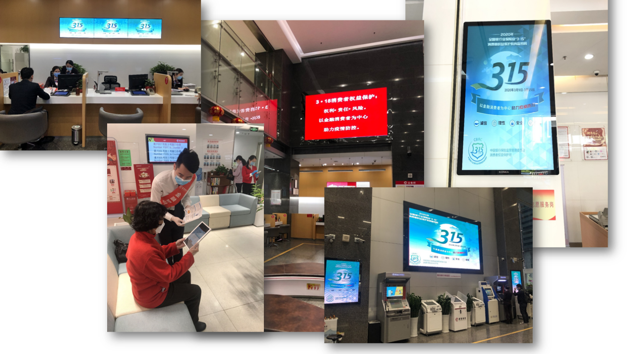 受疫情影響,在今年的3.15宣傳教育活動(dòng)期間,招商銀行深圳分行因時(shí)制宜,充分借助互聯(lián)網(wǎng)媒體渠道,加大線上宣教推廣力度。其中,原創(chuàng)漫畫、視頻等已在中國(guó)銀行業(yè)協(xié)會(huì)、中國(guó)人民銀行深圳市中心支行、招商銀行總行以及信用卡中心的官方微信、微博等各大平臺(tái)競(jìng)相上線,獲得了消費(fèi)者的廣泛好評(píng)。同時(shí),在手機(jī)銀行 App網(wǎng)點(diǎn)線上店開辟“消保有招”3.15專欄,不斷開創(chuàng)新的宣傳場(chǎng)景和消費(fèi)者觸點(diǎn)。結(jié)合電臺(tái)廣播交通頻率1062、新聞898、音樂971等傳統(tǒng)媒體平臺(tái)在早晚高峰期循環(huán)播放活動(dòng)主題,以短平快、覆蓋廣的方式大力推動(dòng)金融宣教工作,進(jìn)一步擴(kuò)充宣傳渠道和受眾面。同時(shí),以營(yíng)業(yè)廳為陣地,通過跑屏、電子海報(bào)機(jī)、電視等多媒體設(shè)備播放宣傳素材,多種渠道共同推廣打造立體宣教格局,覆蓋更多消費(fèi)者群體進(jìn)一步增強(qiáng)影響力。