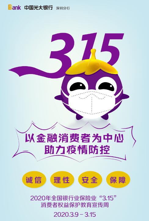 深圳新聞網(wǎng)3月13日訊(記者 朱琳 通訊員 樓蓉 李昕)近日,2020年“3·15消費(fèi)者權(quán)益保護(hù)教育宣傳周”正式啟動(dòng)。與往年不同,今年一場(chǎng)突如其來(lái)的新冠肺炎疫情席卷全國(guó)。面對(duì)疫情危機(jī),中國(guó)光大銀行深圳分行積極行動(dòng),在滿(mǎn)足特殊時(shí)期客戶(hù)服務(wù)需求的同時(shí),以“以金融消費(fèi)者為中心,助力疫情防控”為主題,通過(guò)做好線(xiàn)上金融知識(shí)宣傳,創(chuàng)新金融服務(wù)模式,打造安全營(yíng)業(yè)環(huán)境,提高客戶(hù)滿(mǎn)意度,推動(dòng)消費(fèi)者權(quán)益保護(hù)工作。光大銀行深圳分行以?xún)?yōu)質(zhì)、高效、貼心的金融服務(wù),為防控阻擊戰(zhàn)、發(fā)展陣地戰(zhàn)“兩個(gè)戰(zhàn)場(chǎng)”貢獻(xiàn)光大力量。