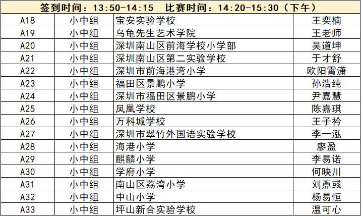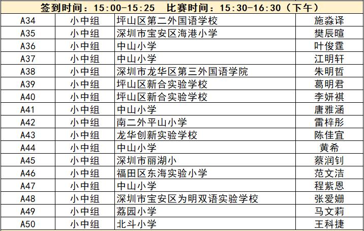 “誰是故事大王·第五季”分為小中組和小高組,此次中行特約專場海選報名的學(xué)生將以脫稿的形式,不限主題,在限時5分鐘內(nèi),講述積極健康向上的故事。評委老師們將從四個維度進(jìn)行評分,其中內(nèi)容占50%、表現(xiàn)技巧占30%、儀態(tài)占10%,以及時間掌控、創(chuàng)意特色呈現(xiàn)等占10%。最終,本場活動將選拔出部分學(xué)生晉級“誰是故事大王·第五季”深圳市復(fù)賽,他們將和來自指定校園分賽區(qū)、特約專場以及線上分賽區(qū)的選手一起爭奪深圳市決賽名額。現(xiàn)將上場順序(即所在小組的序號順序)、名單、簽到時間、比賽時間公布如下: