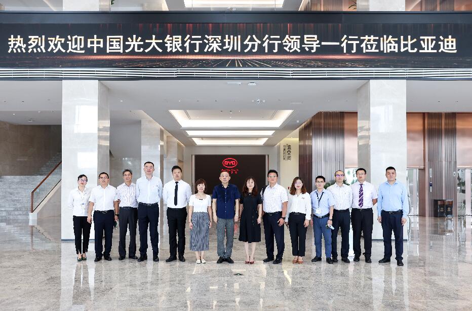 2018年12月11日,光大集團與比亞迪在中國光大中心簽署戰(zhàn)略合作協(xié)議。次年9月,李曉鵬董事長前往深圳調研比亞迪,與比亞迪董事長兼總裁王傳福進行工作會談,雙方合作更為密切。2021年6月9日,光大銀行深圳分行行長韓學智率隊拜訪比亞迪集團,雙方就踐行國家“創(chuàng)新、協(xié)調、綠色、開放、共享”發(fā)展理念,進一步落實中國光大集團與比亞迪集團重要戰(zhàn)略合作協(xié)議,深化綜合金融服務,加強協(xié)同聯動發(fā)展等方面進行座談,為下一步光大銀行與比亞迪集團的合作打下堅實的基礎。