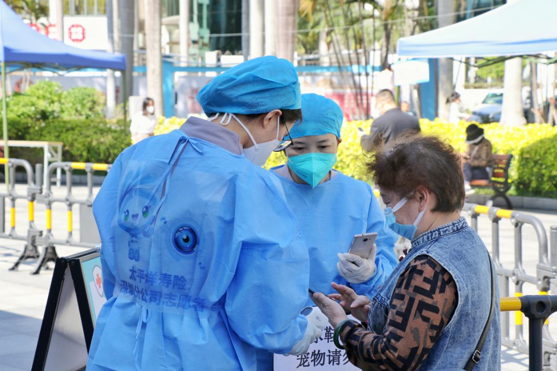 自3月9日起,中國(guó)太保壽險(xiǎn)深圳分公司志愿者每天分兩批前往蓮花一村社區(qū)核酸點(diǎn)開(kāi)展志愿服務(wù)。在社區(qū)入口,他們嚴(yán)守“入口關(guān)”,輕聲提醒社區(qū)居民和訪客掃描“場(chǎng)所碼”,認(rèn)真查驗(yàn)每一位居民和訪客的健康碼情況;在核酸服務(wù)隊(duì)伍,他們耐心維持隊(duì)伍秩序,提醒居民做好自我防護(hù)、保持一米距;在核酸服務(wù)綠色通道處,他們以熱情的態(tài)度詳細(xì)解答居民的疑惑,指導(dǎo)老人、小孩和特殊人群掃碼、填寫資料;在居民樓里,他們拿著小喇叭,一層樓一層樓地提醒居民們下樓做核酸......他們?nèi)σ愿?,以扎?shí)的工作、貼心的服務(wù)當(dāng)好疫情聯(lián)防聯(lián)控的“守門員”“服務(wù)員”“宣傳員”,用實(shí)際行動(dòng)點(diǎn)起了陰霾下幾抹火紅的溫暖,架起了抗疫防疫“暖心橋”。