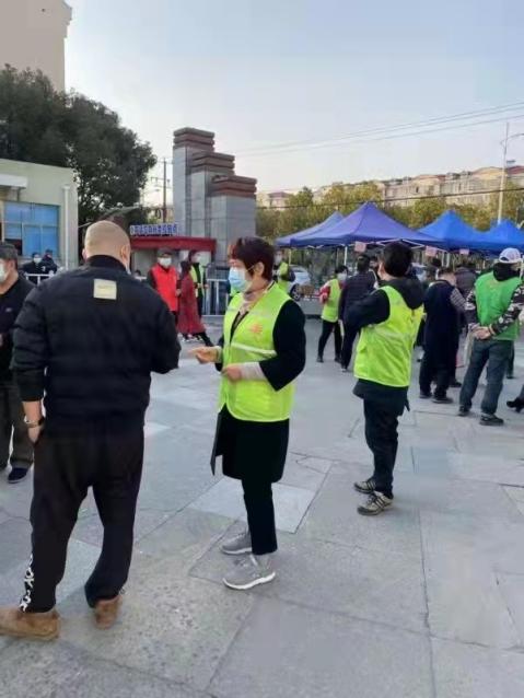 上圖:郭秀芳在街道核酸檢測中負責引導(dǎo)協(xié)調(diào)