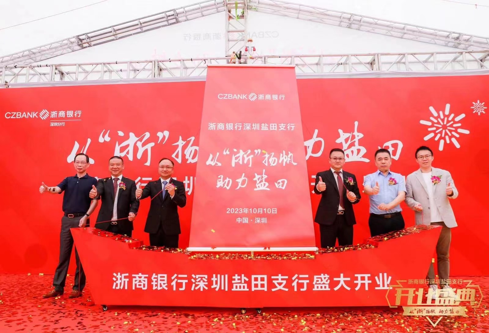 深圳新聞網(wǎng)2023年10月10日訊(記者 朱琳 通訊員 劉璇)10月10日,浙商銀行深圳鹽田支行舉辦了“從浙揚帆,助力鹽田”開業(yè)慶典。鹽田區(qū)人民政府副區(qū)長周建軍,鹽田區(qū)工業(yè)和信息化局局長汪大鵬,浙商銀行深圳分行黨委書記、行長樓瞿華,浙商銀行深圳分行黨委委員、紀(jì)委書記、風(fēng)險監(jiān)控官郭維奇,華南城控股集團(tuán)執(zhí)行董事覃文忠,浙商銀行深圳鹽田支行行長葉藝華以及鹽田發(fā)展改革局、鹽田區(qū)科技創(chuàng)新局、鹽田區(qū)財政局等機(jī)構(gòu)負(fù)責(zé)人、企業(yè)商會代表60余人出席。