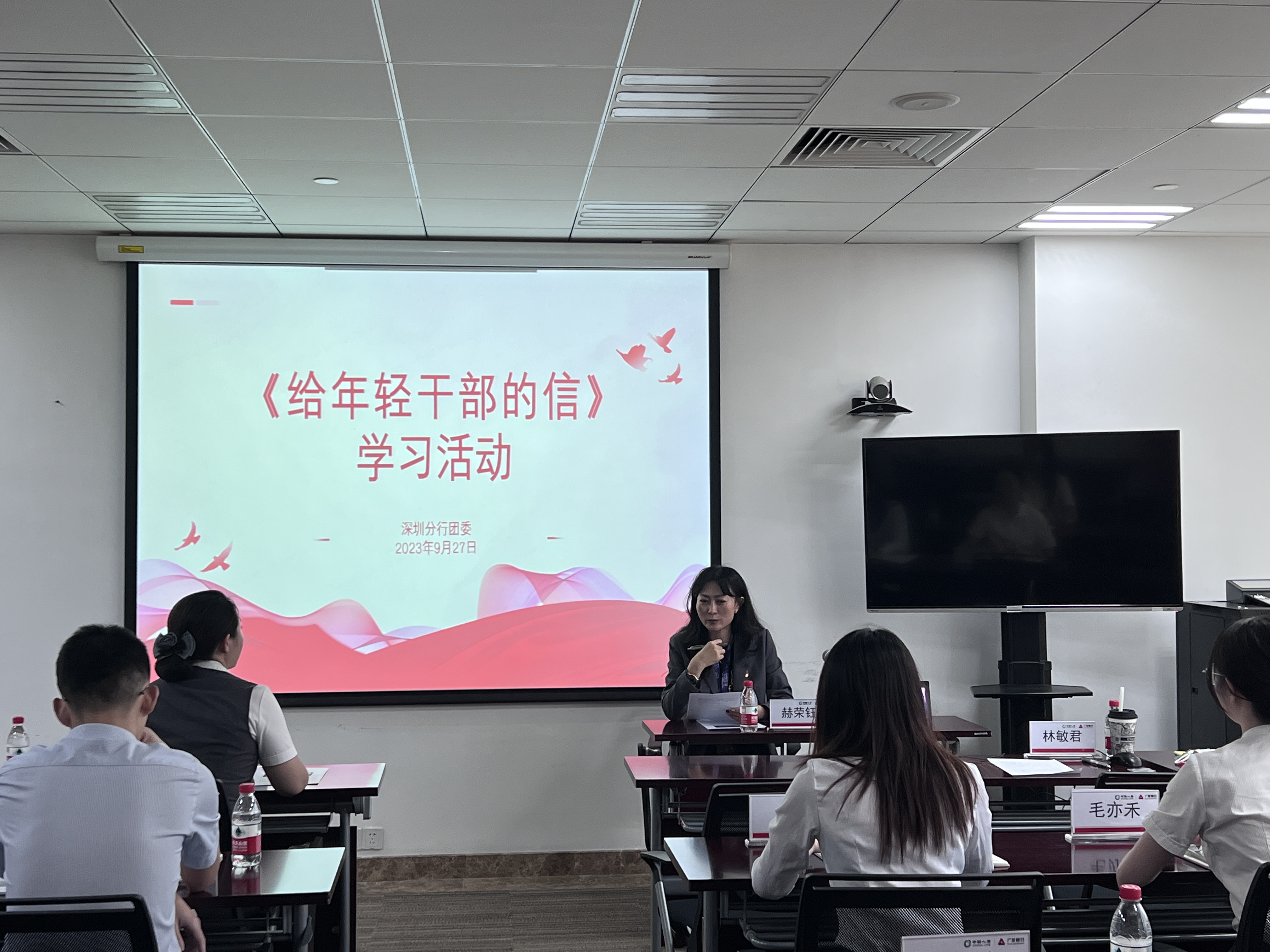 深圳新聞網(wǎng)2023年10月17日訊 (記者 朱琳 通訊員 金橋 李華鳳)為深入學(xué)習(xí)貫徹習(xí)關(guān)于青年工作的重要論述,加強團(tuán)員青年廉潔教育,引導(dǎo)青年永葆心靈的純粹,近期,廣發(fā)銀行深圳分行團(tuán)委組織開展《給年輕干部的信》學(xué)習(xí)活動,通過線下、線上同步會議的形式與全體團(tuán)干部共讀共學(xué),各團(tuán)委委員、團(tuán)總支書記、團(tuán)支部書記近50人參加。