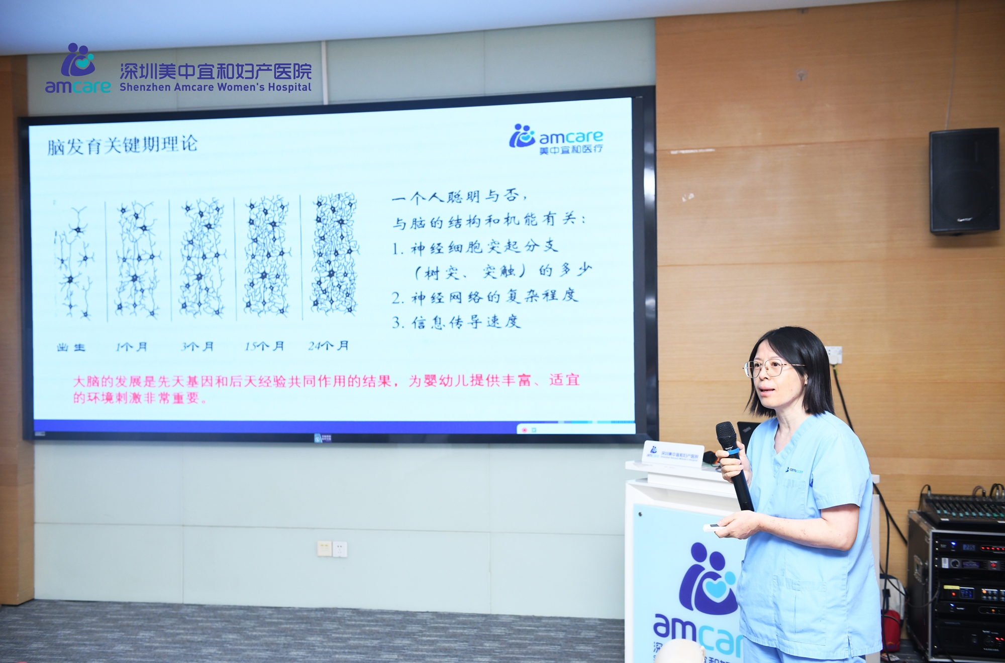深圳美中宜和婦產(chǎn)醫(yī)院兒科主任何繪敏以《“醫(yī)育融合”理念下的兒保服務(wù)體系探索》為題,系統(tǒng)闡述了兒童早期發(fā)展的科學(xué)內(nèi)涵與實踐路徑。她強調(diào),0-3歲是兒童腦發(fā)育的“機會窗口期”,生命最初1000天的健康管理對全生命周期具有決定性影響。何繪敏也分享了深圳美中宜和婦產(chǎn)醫(yī)院持續(xù)深化“醫(yī)育融合”的具體實踐經(jīng)驗,如開展多種形式的科普課、實操課,課后的精細化管理模式等。