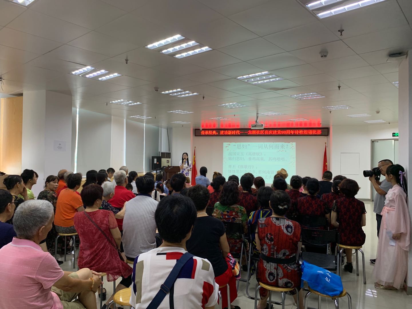 講座開(kāi)始前,龍湖社區(qū)古詩(shī)新韻班的學(xué)員傾情奉上國(guó)學(xué)經(jīng)典新學(xué)堂歌——《游子吟》,為本次活動(dòng)拉開(kāi)了序幕。接著,龍湖社區(qū)的羅黎靜書(shū)記深情致辭,為“新時(shí)代中華優(yōu)秀傳統(tǒng)文化”項(xiàng)目走進(jìn)社區(qū)表示榮幸和歡迎,“人生自有詩(shī)意,詩(shī)意美在四季。今天來(lái)到現(xiàn)場(chǎng)的每一個(gè)人都心中有愛(ài),腹中有詩(shī),對(duì)生命有著詩(shī)一般的向往和追求”,喚醒生命中的詩(shī)意,活動(dòng)的意義也在于此。