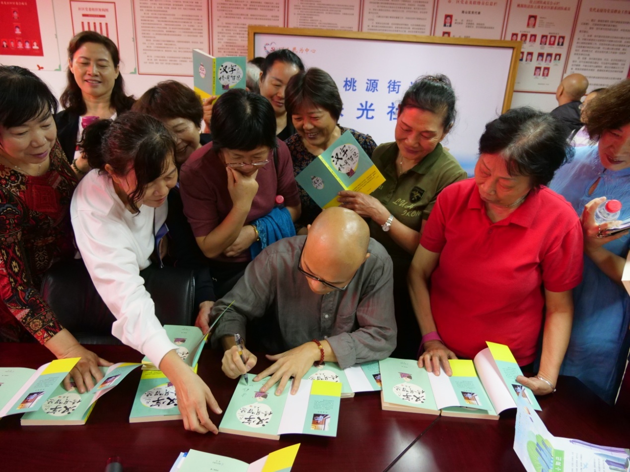 講座結(jié)束之后,社區(qū)居民紛紛拿起手中的創(chuàng)建文明城市學(xué)習(xí)讀本《漢字與修身智慧》要求劉建彪老師簽名,“這是一本很棒的美德教育親子讀物,回去和孫子認(rèn)真品讀每個漢字,借助優(yōu)秀傳統(tǒng)文化不斷提升個人的文明素養(yǎng)?!弊≡趯氈榛▓@的退休老師丁阿姨說。 (通訊員:楊婷姻 攝影:田正中)