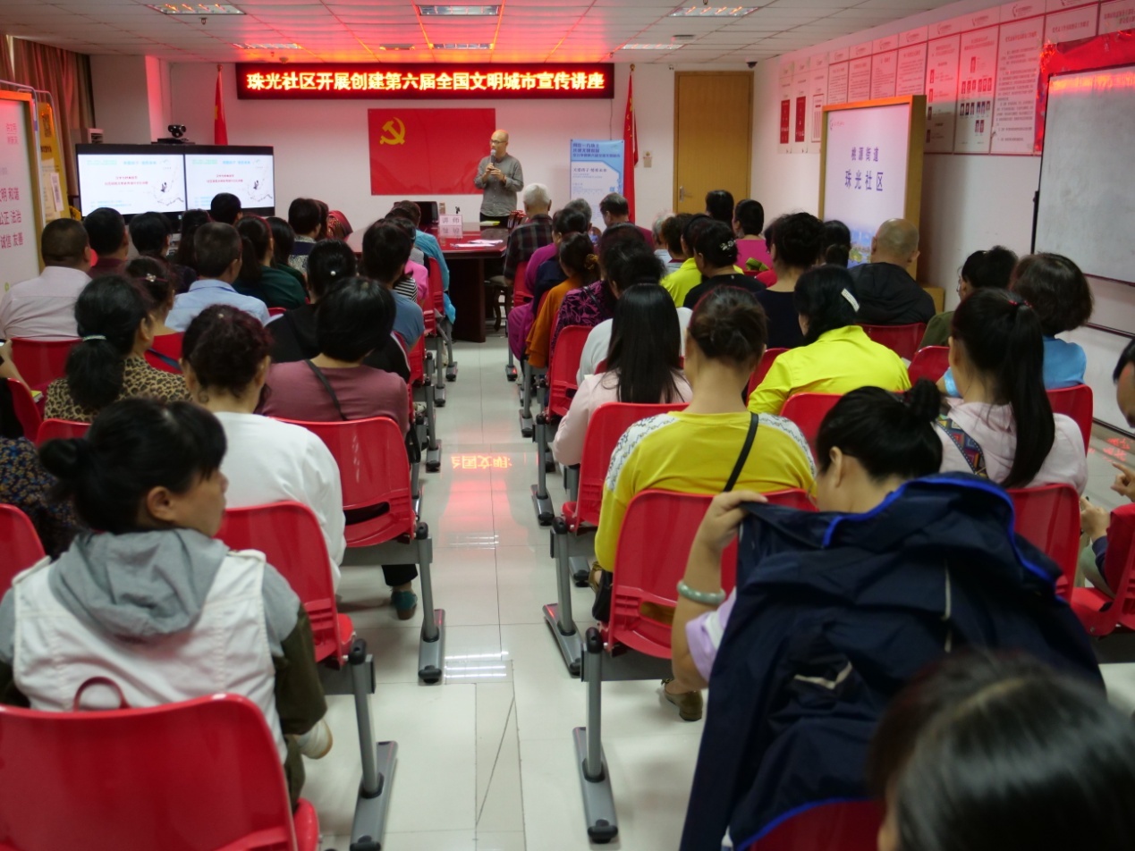 最后,劉建彪老師高度表揚(yáng)了珠光社區(qū)居民認(rèn)真專注的聽講態(tài)度,他指出,尊師好學(xué)也是“文明”的體現(xiàn),并由衷感謝珠光社區(qū)黨委對本次活動的有序組織與安排,贊揚(yáng)他們對城市文明創(chuàng)建工作的重視與支持。
