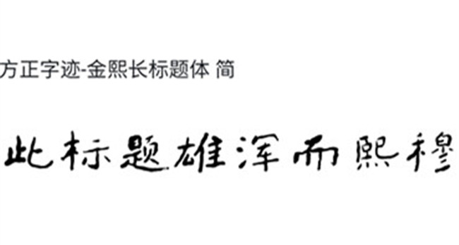 金熙長先生創(chuàng)作的《方正字跡-金熙長標(biāo)題體》,以嚴(yán)謹(jǐn)?shù)膶W(xué)術(shù)態(tài)度,經(jīng)過近四十年來一直不斷的歷代名碑名帖的錘煉化虛,終將難字拆開成“又佳”,形成自已目前“雄渾靜穆與高古野逸為一爐的居士書風(fēng)面貌”。面對(duì)《方正字跡-金熙長標(biāo)題體》,讀者只要將目光稍作停留,就不難發(fā)現(xiàn)該字體有以下特色——