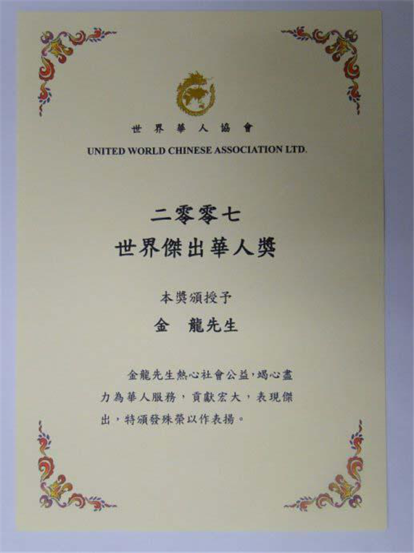 21)2007年,深圳首位書法家獲“世界杰出華人獎(jiǎng)”