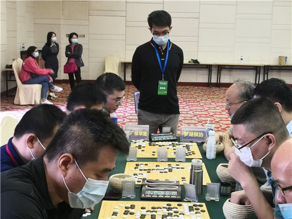 本屆聯(lián)賽在仍在抗疫的形勢下來之不易,賽事組委會(huì)非常珍惜,在防疫方面下了一番功夫。本次賽事執(zhí)行主任、著名國手梁偉棠九段介紹說:組委會(huì)在本次賽事《補(bǔ)充規(guī)定》中要求“本屆賽事因?yàn)橐咔榉揽匦枰w人員必須佩戴口罩,掃碼入場,并全程不得摘下口罩;體溫過高者謝絕入場”。記者觀察到,現(xiàn)場的防疫落實(shí)還是比較到位的,一是在賽場入口布置了三人團(tuán)隊(duì),加強(qiáng)了掃碼、體溫檢測、提醒大家戴口罩,凡是入場的隊(duì)員、工作人員以及觀戰(zhàn)的圍棋愛好者,都必須進(jìn)行體溫檢測,符合正常體溫的方可入場參賽;二是要求參賽隊(duì)員和工作人員戴口罩;三是加強(qiáng)賽場巡查,對沒有自覺戴口罩的在場人員進(jìn)行勸導(dǎo)??傮w來說,賽場防疫秩序良好。