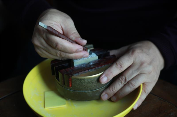 最后,請寧老師對治印的后學(xué)說幾句,他說“什么時候都不晚,只要肯開始,找到好的老師,持之以恒,便有機(jī)會成功”,自己的經(jīng)歷就是一個證明吧。也是,當(dāng)下中國逐漸進(jìn)入“老齡化社會”,許多老人退休之后“無所事事”,等退體金、等“臨門一腳”成為常態(tài)。而寧起興憑著一份興趣,六十歲而后拓出一片天地,堪為榜樣!令人欣喜是,他的行為對子孫也是一種言傳身教,小外孫女2歲時在街上看到篆字招牌,馬上就說這是姥爺?shù)淖?。平日,她還學(xué)著姥爺讀書刻章的模樣,做手工、畫畫,常有創(chuàng)意。看到這一幕,作為古稀老人,寧起興感到非常欣慰。他說,自己做到了“老有所為”,還產(chǎn)生了教化子孫的效果,開心是自然的。他希望更多的人喜歡中國篆刻藝術(shù),希望更多的退休老人們生活充實(shí)、老有所為!