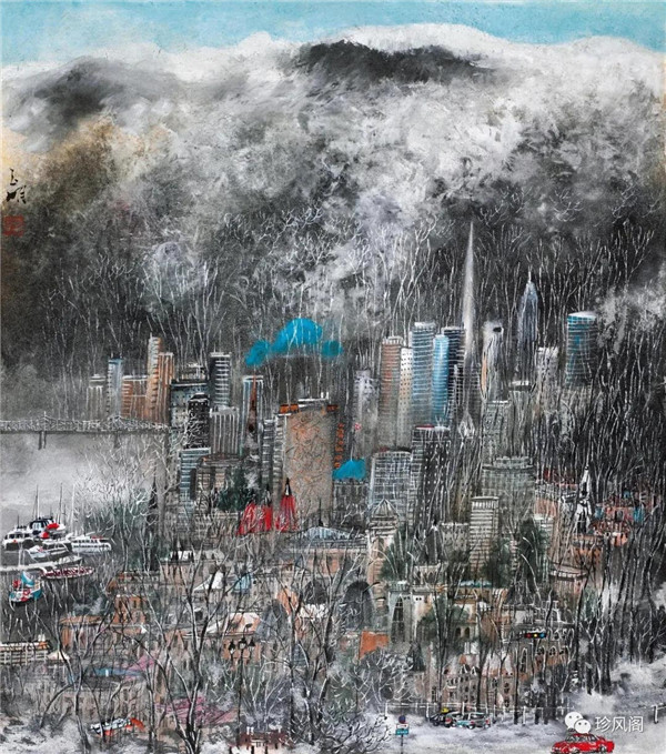 城市山水畫是新時期以來伴隨著中國城市化浪潮而在美術界提出的一個新概念,旨在用中國畫或水墨畫來反映現(xiàn)代人賴以生存的城市及城市生活,以此探索中國畫另一種方式的現(xiàn)代性轉型。城市山水畫并不是城市加山水這樣簡單。從藝術語言來說,山水筆墨的縱情寫意是完全排斥鋼筋水泥筑成的各種擠壓在一起的城市建筑的,中國畫的寫意筆線擅長勾廓,而拙于造型體量的塑造。因而,僅就中國畫表現(xiàn)現(xiàn)代城市建筑這一能力而言,傳統(tǒng)筆墨必須加以改良或新造才能適應現(xiàn)代城市建筑及都市景觀的表現(xiàn)需求。從藝術境界來說,城市山水畫展現(xiàn)的應當是現(xiàn)代人的生活方式,表達的意蘊也應當是自然與人的和諧精神;但城市樓宇林立,玻璃和鋼的大廈越建越高,高科技的交通與通信工具迫使城市的個人空間越來越小,而城市生活節(jié)奏則越來越快,這意味著城市生存與城市生活方式對于人與自然和諧關系的背離。因而,城市山水畫無論是表現(xiàn)現(xiàn)代化城市生活與自然的諧調(diào)關系,還是僅僅用筆墨或彩墨表達現(xiàn)代化城市人文景觀,都是值得中國畫學探討的一個重要學術課題。