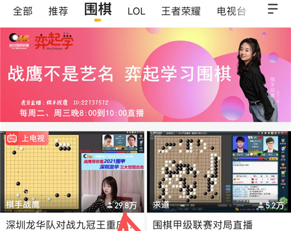 今日虎牙直播,職業(yè)女棋手戰(zhàn)鷹繼續(xù)現(xiàn)場講解點(diǎn)評深圳龍華隊(duì)對局情況,觀看人數(shù)又創(chuàng)新高,直沖30萬大關(guān)。賽后,“龍哥”時(shí)越來到直播室,與迷們一起分享了對局過程中的心路歷程。戰(zhàn)鷹作為圍棋知名主播,是深圳龍華隊(duì)網(wǎng)上直播合作人,為龍華隊(duì)帶來了一波接一波的人氣,直播室十分熱鬧!喜歡的朋友接著看吧!不過,大家要記得:明天圍甲休息一天,接著三天會(huì)連播。