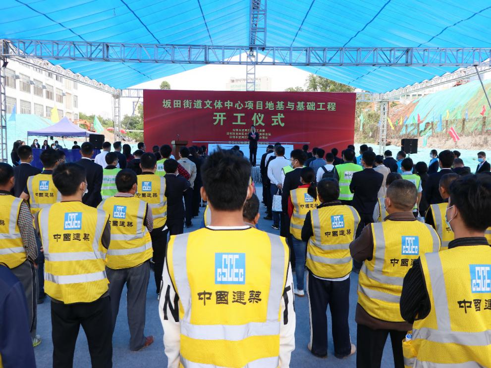 龍崗區(qū)文化廣電旅游體育局黨組成員、副局長羅偉南,坂田街道黨工委委員、公共服務辦公室主任程悅安,龍崗區(qū)建筑工務署建筑三科科長劉歆,深圳市光明集團有限公司副總經理、華僑城光明(深圳)投資有限公司執(zhí)行董事嚴木才、總經理楊建華,合創(chuàng)建設工程顧問有限公司總裁常運青,中建八局龍崗科創(chuàng)發(fā)展有限公司執(zhí)行董事趙小東、執(zhí)行總經理馮軍紅出席開工儀式。