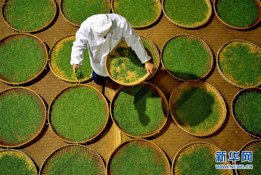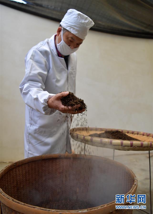 產(chǎn)于湖北省恩施土家族苗族自治州利川市毛壩鎮(zhèn)楠木村的“冷后渾”鮮葉,是制作利川紅茶最為優(yōu)質(zhì)的原料。工人先采下“冷后渾”茶樹鮮葉,后經(jīng)萎凋、揉捻、發(fā)酵、烘烤、篩選、整形、品級(jí)等工藝,歷時(shí)十多個(gè)小時(shí),最終制成的紅茶沖泡后湯色紅艷明亮、滋味醇厚甘爽。在茶湯冷卻后,湯色逐漸變渾,加熱后又恢復(fù)紅艷明亮,這也是“冷后渾”得名的由來。新華社發(fā)楊順丕攝