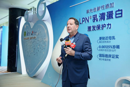 隨后他在會上做了合生元營養(yǎng)與護理研究院關于“母乳營養(yǎng)研究成果”的分享,重點介紹了BINC在母乳研究關于LPN?乳清蛋白活性成分[1]、SN-2 PLUS和母乳營養(yǎng)個性化檢測的成果。據(jù)Patrice Malard博士介紹,他們聯(lián)合了母乳營養(yǎng)與乳蛋白研究的國際頂級機構共同完成了中國首例LPN?乳清蛋白活性成分的中國嬰兒臨床研究,取得了可喜的研究成果。結果顯示:LPN?乳清蛋白能幫助調(diào)節(jié)嬰兒的細胞因子水平,減少體溫異常[2,3,4]。對此,汪之頊教授對這類活性蛋白的研究成果表示贊賞,認為如果能將這些母乳研究領域的重要成果充分應用到嬰幼兒營養(yǎng)產(chǎn)品,是一件非常有意義的事。