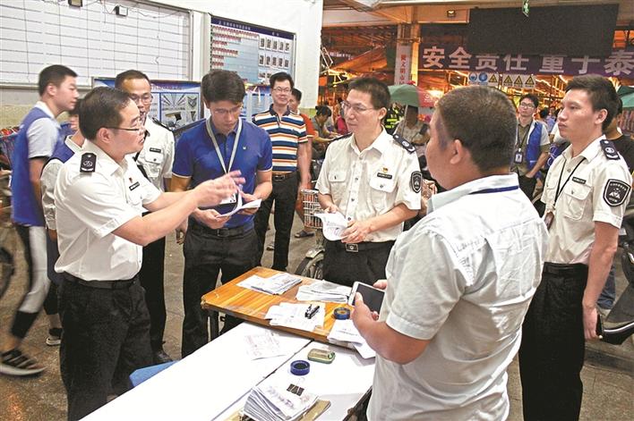 光明新區(qū)食藥安辦介紹,早在2017年,新區(qū)就全面啟動了農貿市場肉品和水產品質量保障工作,以夜查、突查的方式對轄區(qū)農貿市場售賣的肉品和水產品進行檢查,及時發(fā)現(xiàn)問題,規(guī)范市場經營秩序。今年3月,市市場和質量監(jiān)管委光明局再次正式印發(fā)文件,明確時間和職責,持續(xù)開展專項整治行動,守護居民舌尖安全。