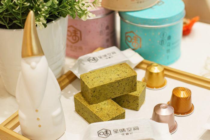除了這款奶黃流心酥,徐福記實(shí)體品牌體驗(yàn)店——呈味空間主打的現(xiàn)烤手工鳳梨酥還有多種口味,有經(jīng)典原味/蔓越莓/馥香烏龍茶/相思抹茶/玫瑰口味供君任選。每款鳳梨酥的誕生都來之不易,從材料制作、烘焙、出爐都要經(jīng)過糕點(diǎn)師傅的精心手工打磨。花費(fèi)15種原料,經(jīng)過11道工序,連各種用料配比都要精確到克才實(shí)現(xiàn)一塊鳳梨酥的誕生,看得出這塊不普通的鳳梨酥“出生“有多矜貴。而且原材料都是精心挑選的清甜細(xì)膩陽光土鳳梨,通常10個(gè)才有一個(gè)符合要求,制作一盒就至少需要整整20個(gè)。反復(fù)打磨鳳梨的果肉,再熬制成細(xì)膩的、富有纖維感的果餡,絲絲纖維口感,一口下去,滿滿鳳梨果肉,瞬間得到視覺與味蕾的雙重滿足。特別一提的還有制作鳳梨酥的糖,不是普通的白砂糖,而是健康而且低熱量的 “海藻糖”,簡直是為擔(dān)心發(fā)胖問題的吃貨們帶來的福音。只有10天保質(zhì)期的美味,吃貨們不用半個(gè)鐘就能解決了哈哈。