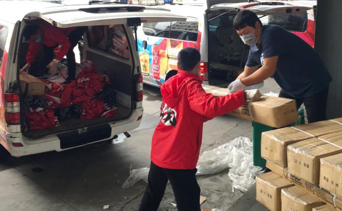 深圳紅??吹较⒑罅⒓葱袆樱环矫鎱f(xié)調(diào)總部及合作伙伴,將平日用于市場活動的大雨傘和四角帳篷數(shù)量全部統(tǒng)計出來;一方面與深圳交警溝通具體捐贈和接收事宜。2月13日下午3時,這批物資(共計500把大傘、50頂四角帳篷、200箱功能飲料)在深圳市公安局交通警察支隊完成捐贈手續(xù)。